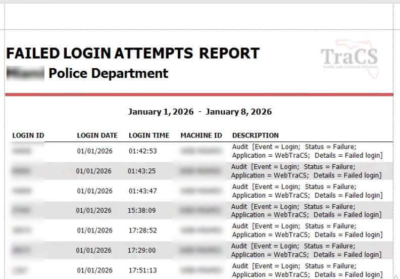 During your FDLE audit, the auditor will ask you to provide information on individual login activity for users within a date range, including failed login attempts as well as a list of both active and inactive users for the agency.