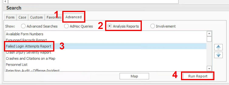 In Forms Manager, go to the Search tab and select Analysis reports and pick Failed Login Attempts Report.