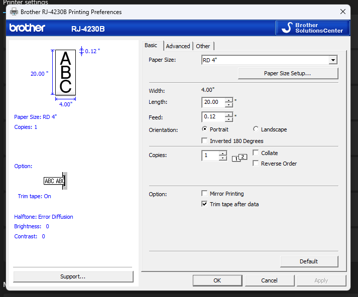 Continuous Roll Settings - Windows Driver