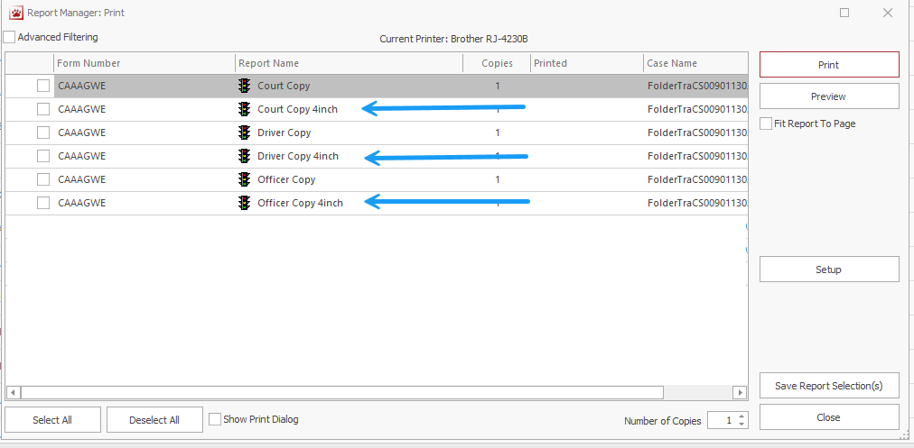 Since the Brother RJ is a 4-inch printer, you must select one of the 4inch reports in the Report Manager.