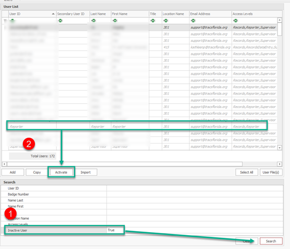 DO NOT inactivate or make changes to any User ID that has tracs in the name.
