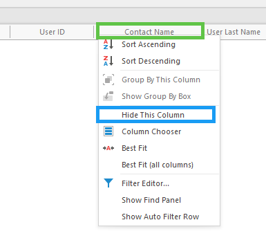 To hide a column, right click and press Hide This Column.
