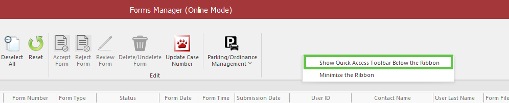 In the screenshot below, Delete/Undelete, Radar Log, NCIC Import, and Void have been added to Quick Access.