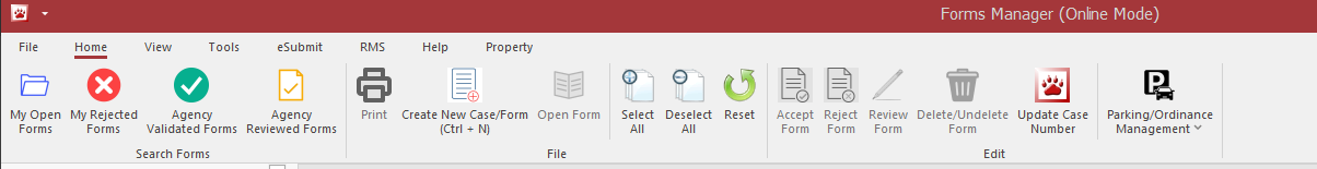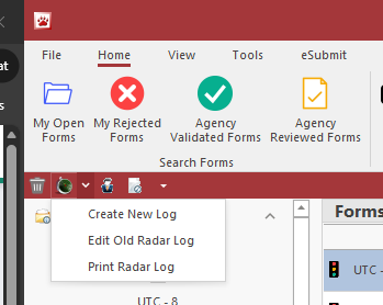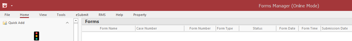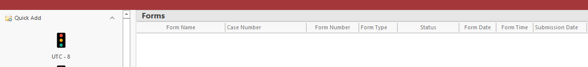 With the exception of the Radar/Laser Log, the Quick Add list contains buttons for each form that is used by the agency.   Press the button to create a form.