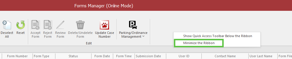 To show or hide Quick Add, Form Details, imported People Vehicle Places, or Currently Open Cases, right click anywhere in the Navigation Bar and press the one that you want to show/hide. You may also press the Navigation button and show/hide from there.
