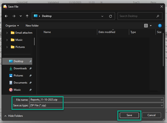 A Save File window will open where you will save your form as a Zip file.