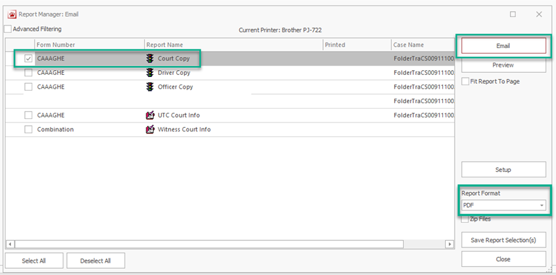 If your agency uses a newer version of Outlook, for the reasons stated above, you can no longer use the previous procedure where you press Email and TraCS launches Outlook, opens a new email, and attaches the file.