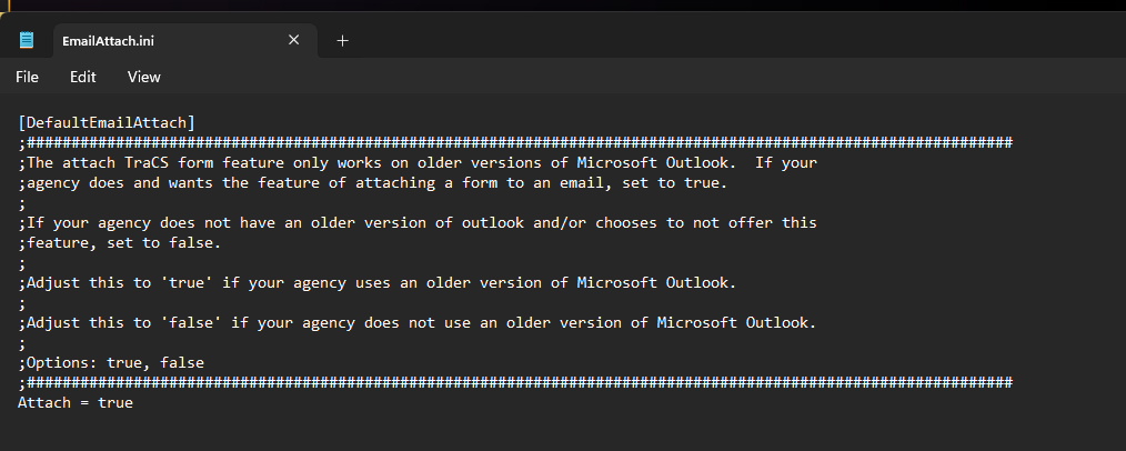Due to changes in how these new Outlook versions operate, a required modification was introduced in TraCS baseline 20.01.55. The TraCS email feature was updated to export attachments to a Zip file, allowing users to manually attach them using their preferred email client.