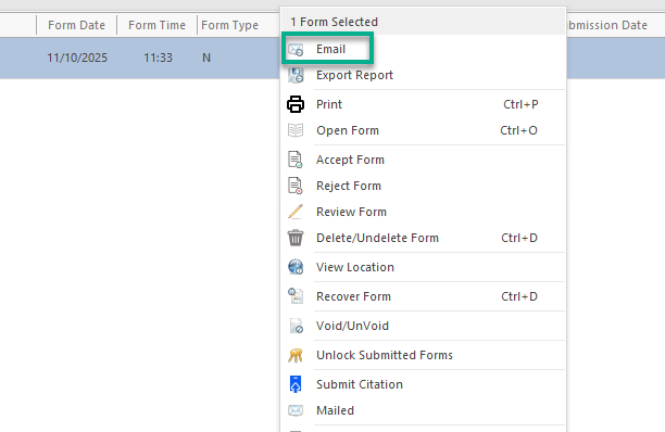 With the form closed, right click and press Email.